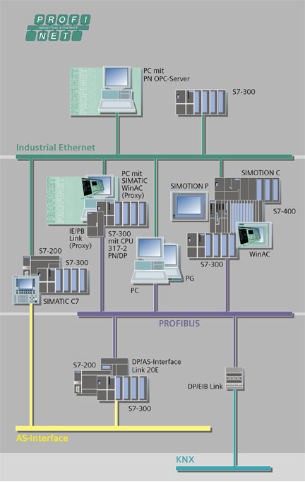 Da Firmen üblicherweise bereits über ein Ethernet-LAN für die Vernetzung der Mitarbeiter-PCs verfügen, ist es mit Industrial Ethernet möglich, in das vorhandene LAN die Geräte mit einzubeziehen, die für die Steuerung und Kontrolle von Produktionsprozessen benötigt werden. |